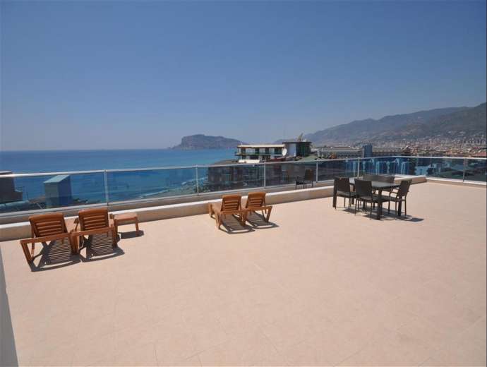 Eine moderne, luxuriöse Residenz in einzigartigem Stil direkt am Strand in der Region Tosmur in Alanya. Sie liegt 2,5 km vom Stadtzentrum von Alanya entfernt. Es gibt auch eine DACHTERRASSE, auf der Sie die Aussicht und die Sonne genießen können.
