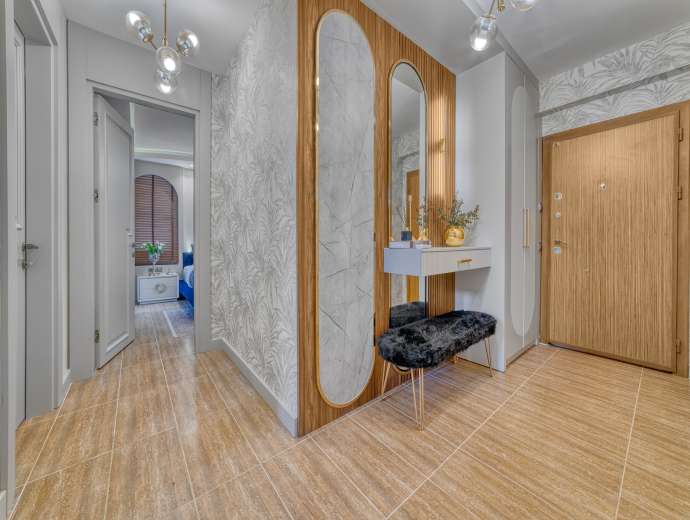 The apartment is modern, Just renovated , elegant and fully furnished, there is floor heating in the apartment.