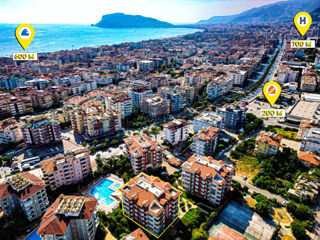 Central , luxurious complex consisting of 3 blocks in the OBA Region of Alanya. IKAMET avaliable.