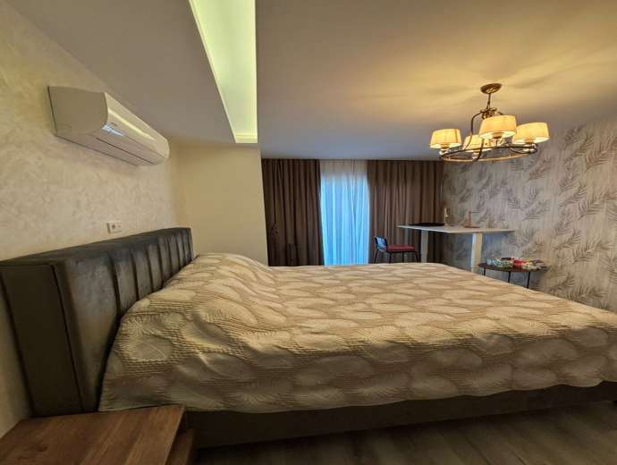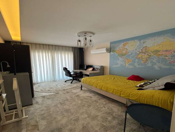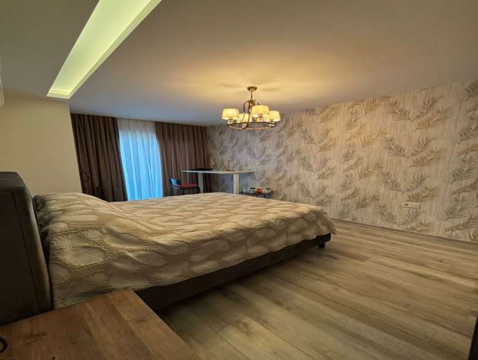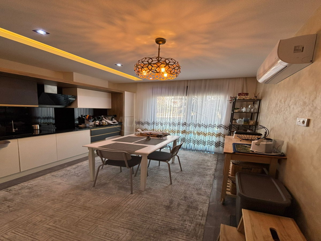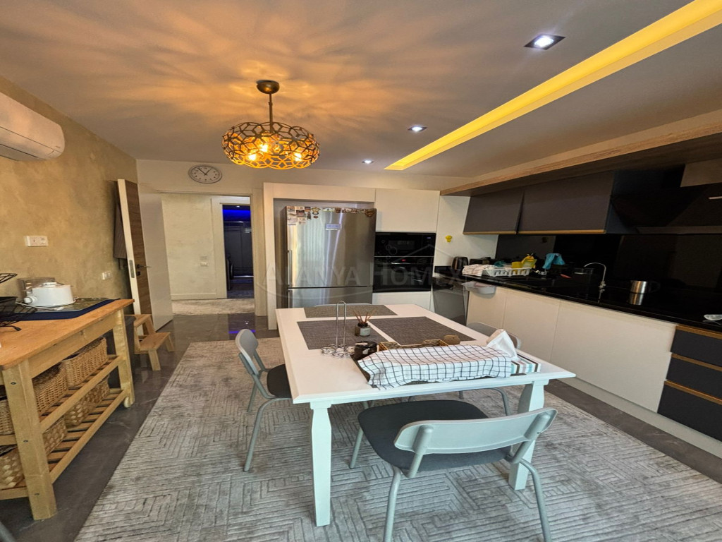 KOMFORTABEL - STILFULL - FULLT MØBLERT leilighet til salgs 3+1 (3 soverom, 2 bad, 1 stue, kjøkken, 2 store balkonger) og totalt 160 m².